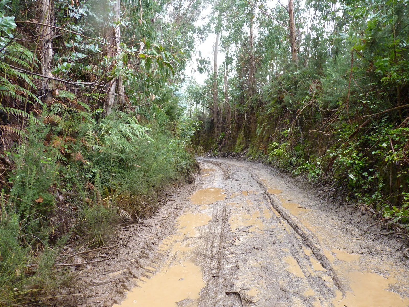 Ondertussen zijn we al goed nat geregend en naderen we Portela...